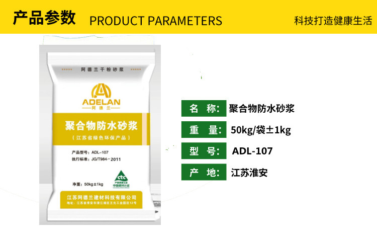 本产品技术指标执行国家行业标准:聚合物水泥防水砂浆(JC/T 984—2005)